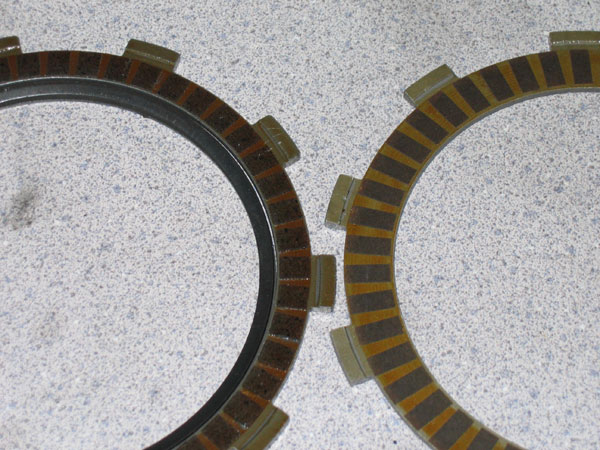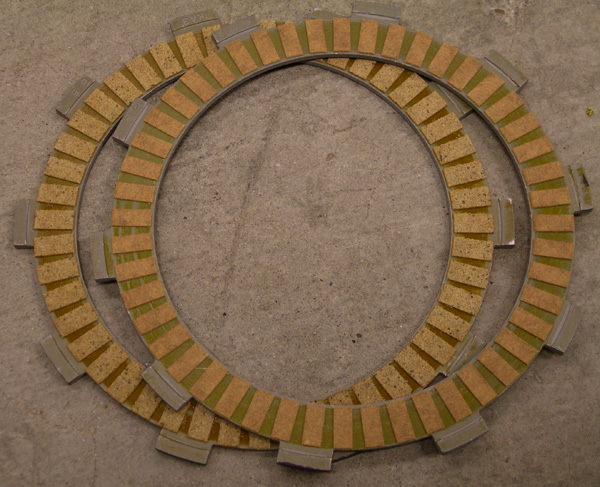 Take a look at the wet clutch plates above and the dry ones below. Notice the difference?