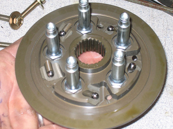 When drive forces are going backwards through the system, the inner basket rides these bearings up the ramps. This movement creates an effect just as if you had disengaged the clutch by that amount. The system attemps to find an equalibriam between the back torque forces and those of the slip springs. The clutch will never fully disengage, but will drag only a set force.