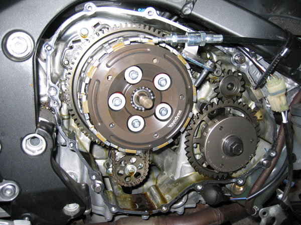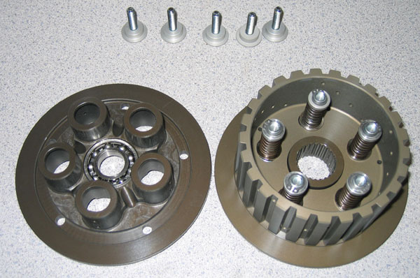 The only difference between the stock unit installation and the Yoyodyne installation is the first friction plate of the stack. In stock form, the first plate, deepest into the engine, is slightly different than the rest and shares the space with a belville spring and washer. This plate is moved into the second position for use with the slip clutch. If this is not done, the washer will jam the sippers mechanism. Some superbike preps will just replace this plate with a standard type plate. You will be fine as long as the total stack height remains the same. Street bikes should keep the plate and move it's position.