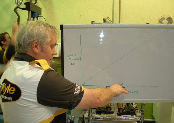 The chasis and geometry measurement section of the lecture. Dan is very eager to pass on his hard earned knowlage.