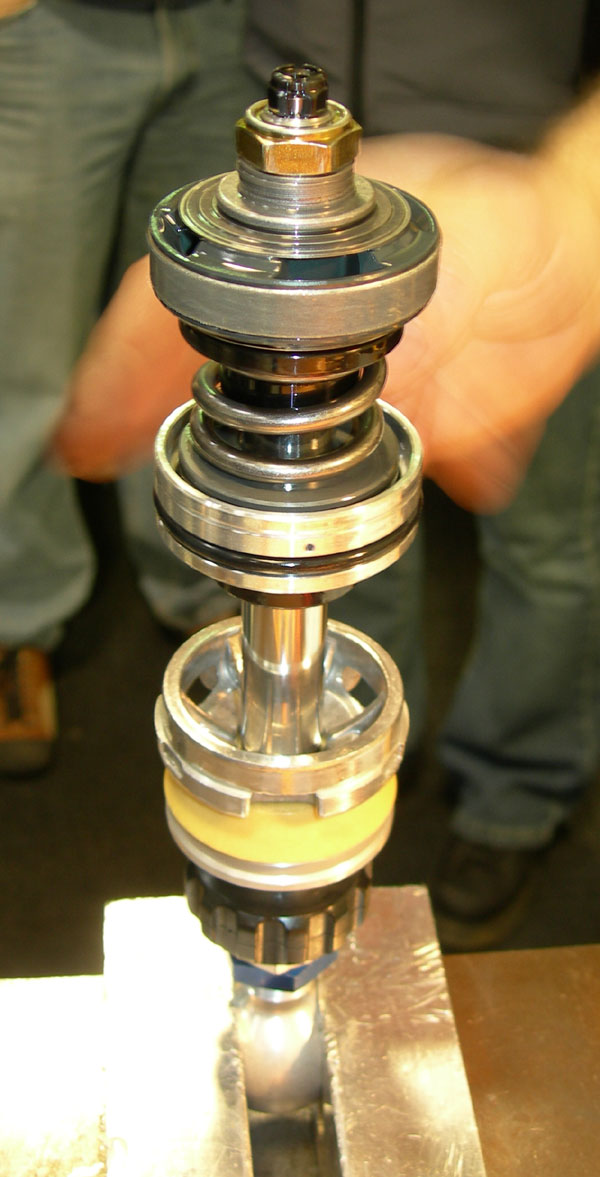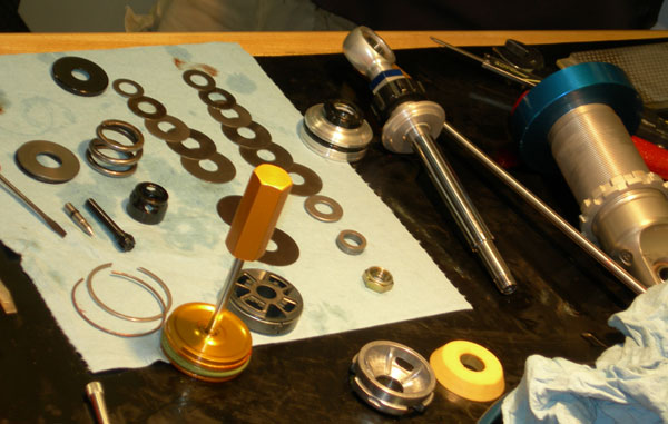 Among the many things Kyle Racing does in the course of the day is take actual suspension components along with racing suspension components and physically dissect them in an understandable way - literally, takes them all apart piece by peice in front of you explaining how each component works (and how to adjust it if possible), along every step of the way. While the dissection process doesn't allow you to become a master suspension mechanic - and that's not the point - it does allow you to understand how the internals of the suspension work together to accomplish the particular goal(s) at hand.