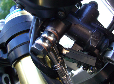 I found that the plumbing is offset oddly. Also, the Goodridge lines that I have on the bike are just too short (from my old F4i). I will have to order some new parts. I ordered up a Galfer 1000RR line kit from Dan Kyle.