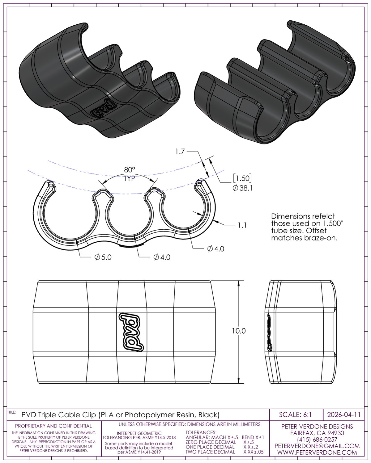 Several rounds of prototypes led to what you see now. A fairly clean and elegant clip. The center axis of each line is matched to the braze-on so that it is as straight as possible along the run.