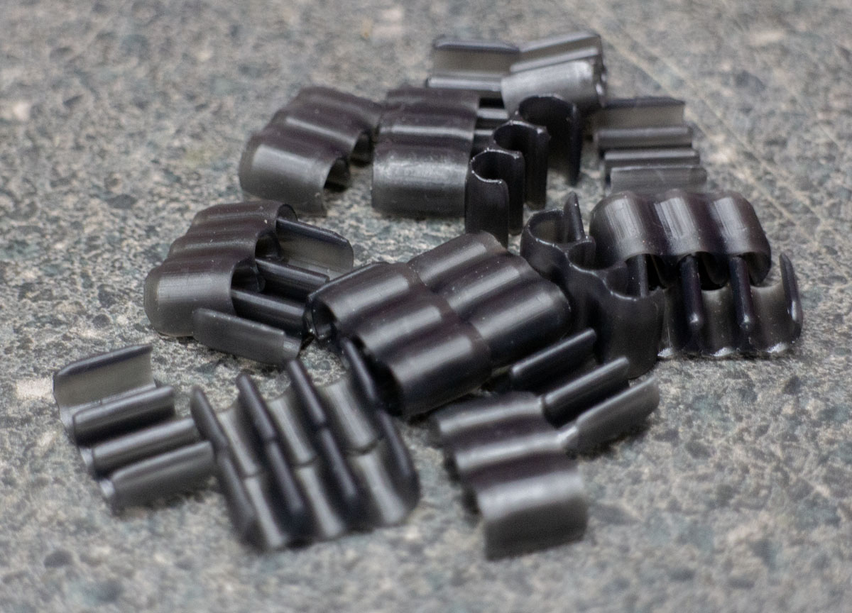 I’d been meaning to do something about this beyond taping them together. That’s not a great solution as servicing the lines is made more awkward. So, clips. Clips are nothing new. Many people have used them. I would do it specifically for my configuration.