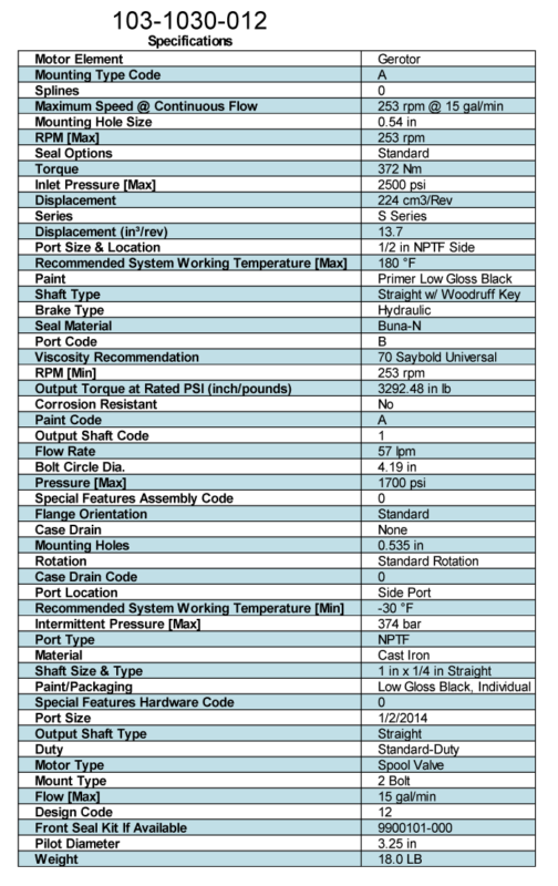 I had purchased one of the cheapest hydraulic motors that I could find on Amazon about a year ago. It’s a knock off of an Eaton Char-Lynn (Danfoss) S Series 103-1030-012 motor. This is a motor used in a wide array of industrial and agricultural equipment. The size is 225, which refers to the fluid displacement of 224 cm^3. It’s a Cast Iron Low Speed, High Torque (LSHT) Spool Gerotor motor with serious output. 372 Nm!! 275 ft-lb!! That’s crazy for such a small package.