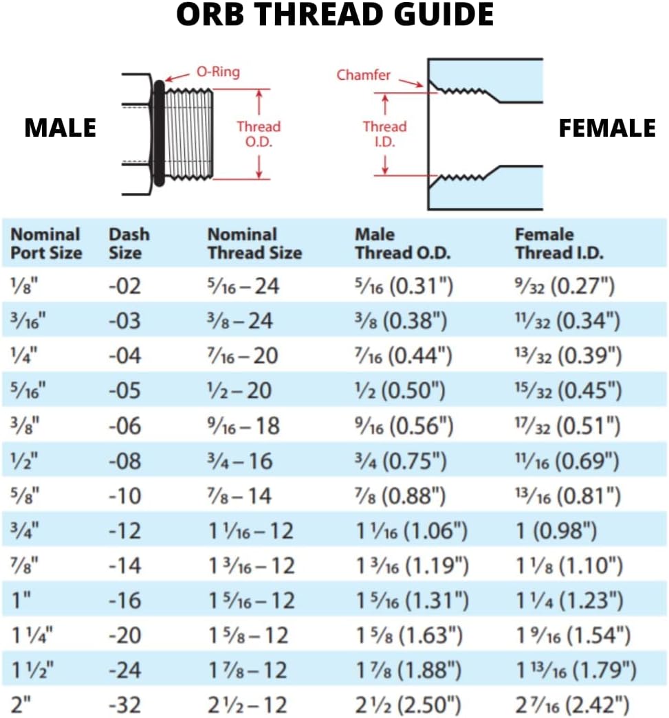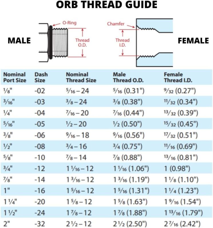 ORB threads are used a lot in these systems. Also NPTF (National Pipe Taper Fuel, ASME B1. 20.3). Make sure you understand these before ordering parts.