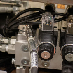 To remedy this, I chose to skip a manifold on top of the pump and run a pair of lines directly to a remote manifold with 3 stations. It’s aluminum, D03 NG6 Cetop 3 subplate pattern, with Pressure Relief valve, FluidHaus MPA6-3-O10O10O8-C-M-1. The manifold’s 300-3,000 psi pressure relief valve (C-10-2) give some safe control outside of the relief in the 4,300 psi (highest) valve in the HPU.