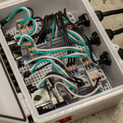 With the hydraulics taken care of, the electricals needed to be configured. This would be an industrial control panel style box as a junction for the systems wires. Laying it out this way makes trouble shooting and reconfiguring very easy and clear. DIN rails are simply the best!